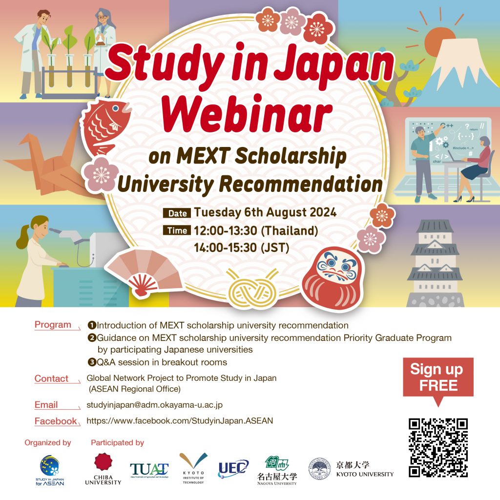 Did you know that there’s another opportunity for you to receive the MEXT scholarship to study in Japan? MEXT scholarship is a fully sponsored academic scholarship for foreign students studying in Japan. This webinar is not limited to undergraduate students. In fact, students who wish to pursue their masters and doctoral studies in Japan are […]