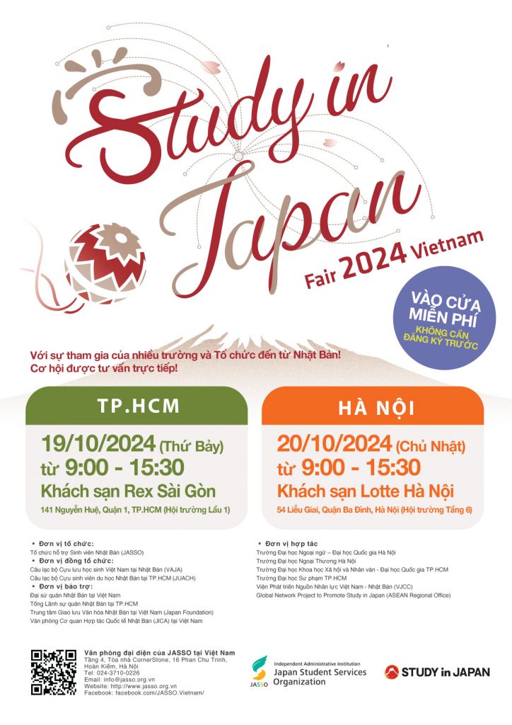 “Study in Japan Fair 2024” đã diễn ra thành công tốt đẹp trong 2 ngày 19 và 20 tháng 10 vừa qua Sự kiện đã thu hút sự quan tâm của đông đảo các bậc phụ huynh và các em học sinh, sinh viên. Hi vọng mọi người đã nhận được thật nhiều những thông […]