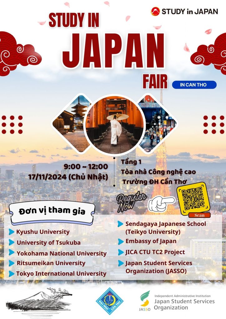 Văn phòng JASSO Việt Nam đã quyết định tổ chức “Study in Japan Fair in Can Tho” và bắt đầu tuyển người tham gia. Tại sự kiện này, các bạn sẽ có cơ hội trò chuyện trực tiếp với người phụ trách của các trường Đại học đang tích cực tiếp nhận sinh viên Việt […]