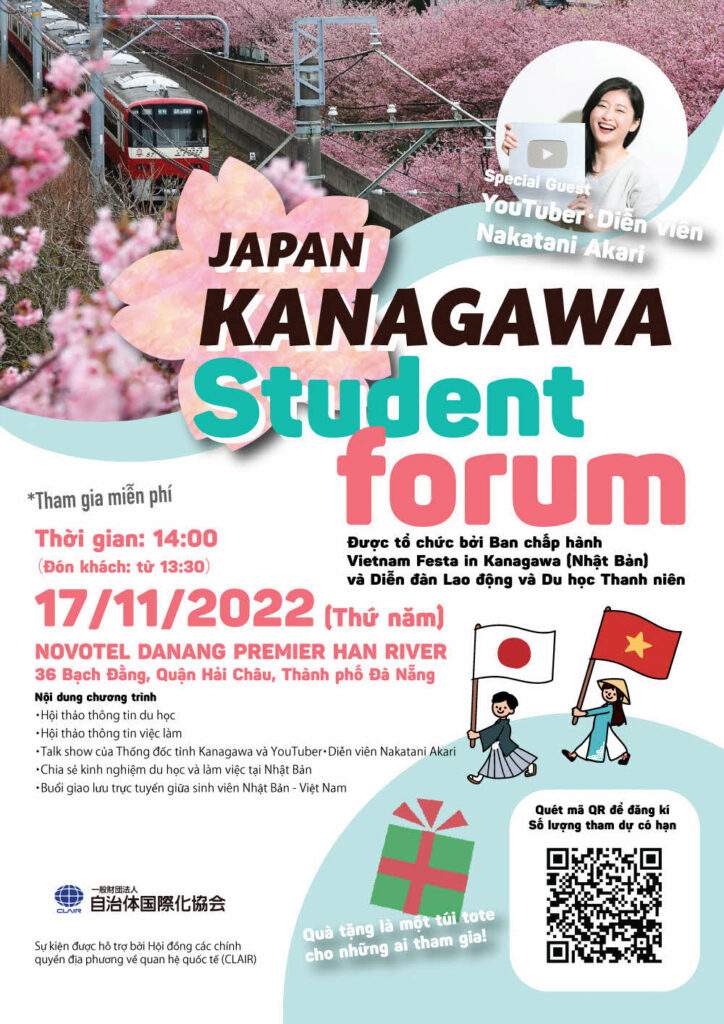 Tỉnh Kanagawa đã bắt đầu tuyển người tham gia cho KANAGAWA STUDENT FORUM được tổ chức vào ngày 17/11 (Thứ 5) tại Thành phố Đà Nẵng.